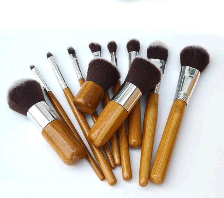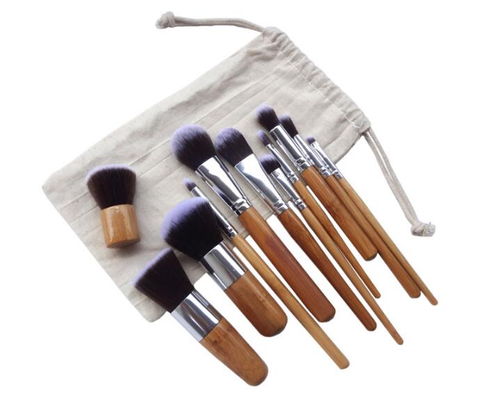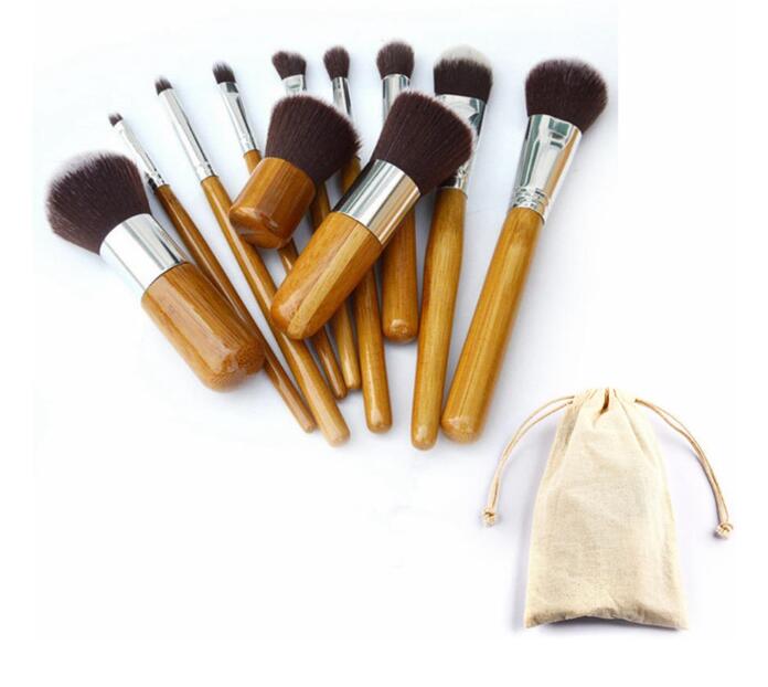 Bamboo Handle Makeup Brushes Set with Bag Professional Cosmetics Brush