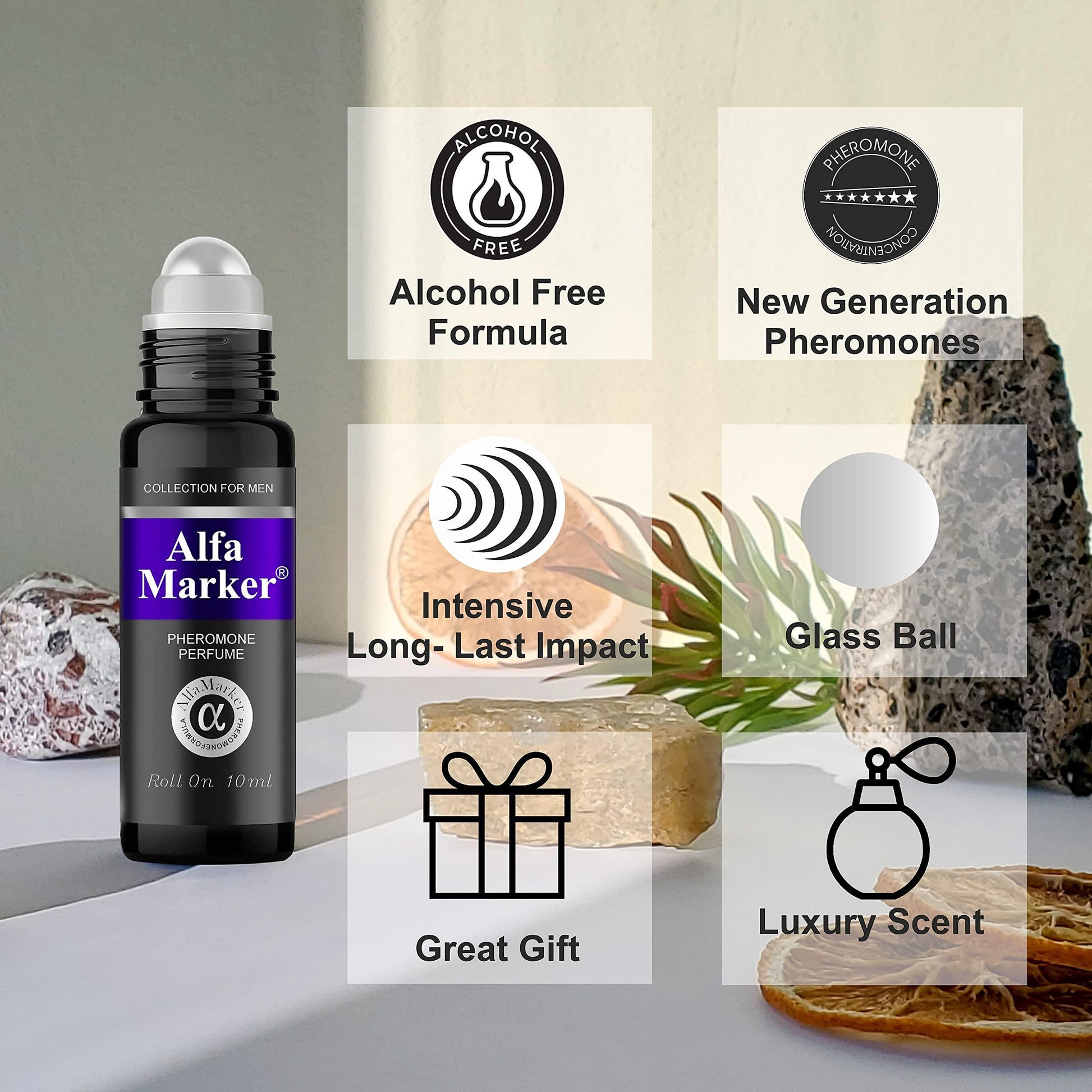 Harnessing the latest advancements in fragrance technology, this unique scent combines exquisite notes with the subtle power of pheromones, creating an irresistible magnetism that sets you apart. The combination of citrusy top notes, aromatic herbs, marine undertones, and warm woody accords creates a luxury lasting fragrance that is simultaneously refreshing, sophisticated, and alluring. Travel size perfumes are specifically designed to provide convenience and portability. It is designed to be lightweight, leak-proof, and easy to weare, making it ideal for use anywhere. Pheromone cologne for men AlfaMarker Rollon fits discreetly in your pocket. Apply to pulse points such as wrists, the back of your neck, and behind the knees for long-lasting intensity. Use day or night.